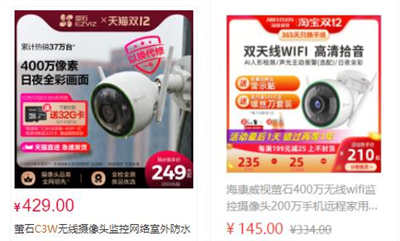 其實不論哪個購物平臺,只要打開頁面隨便一搜“高清監(jiān)控攝像頭”,自營店、官方旗艦店、代理商、專賣店,跳轉出來的店鋪頁面五花八門,門路繁多;以螢石C3W為例,目前做為國內主要的家用高清監(jiān)控攝像頭型號之一,在某寶購物平臺的銷量一直非常好,但價格也從官方旗艦店的400多到專賣店的100多。
